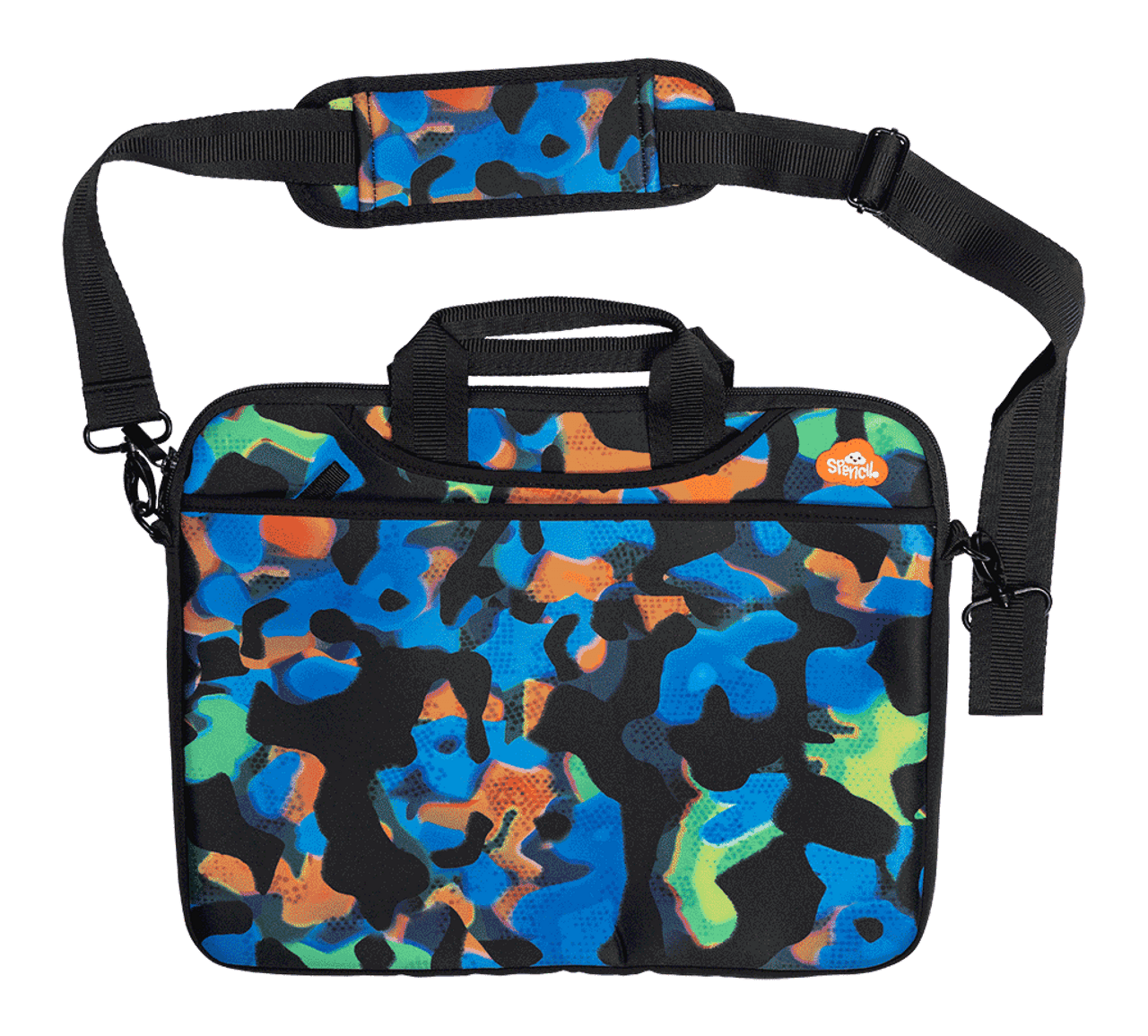 Lightweight, durable, and functional, this neoprene laptop bag is ideal for the older kids carrying their precious tech to, from and around school. Designed to protect laptops from bumps, scratches, and dirt. Stylish as it's functional, our laptop bag is made from high-quality neoprene materials. With padded lining and deep side pockets to fit their mouse, cables and all their other accessories or notebooks. Fits devices up to 15 inches wide.