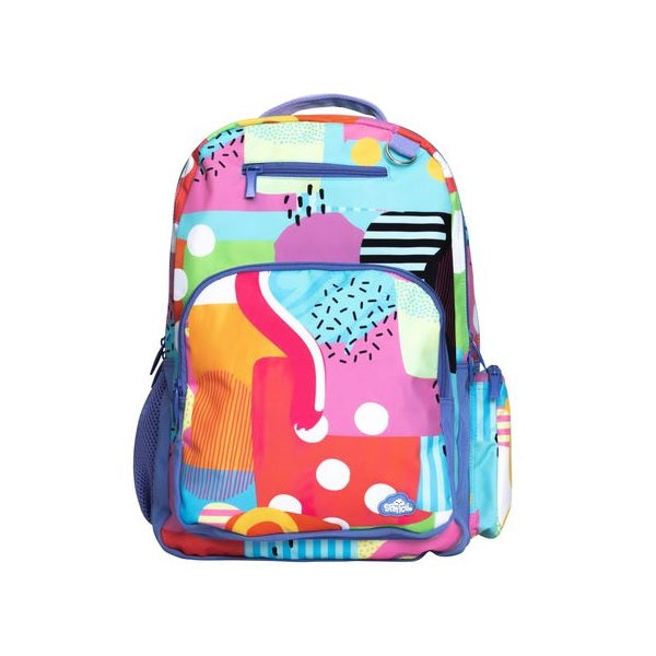 This Big Backpack sports a water bottle compartment, side zip compartment perfect to hold a phone, inner padded pocket for a laptop/tablet and D-loop and lobster clips for bag tags and clipping coin purses and wallets. This bag is both super cool AND practical.