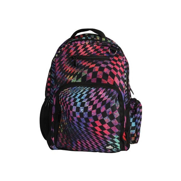 This Big Backpack sports a water bottle compartment, side zip compartment perfect to hold a phone, inner padded pocket for a laptop/tablet and D-loop and lobster clips for bag tags and clipping coin purses and wallets. This bag is both super cool AND practical.